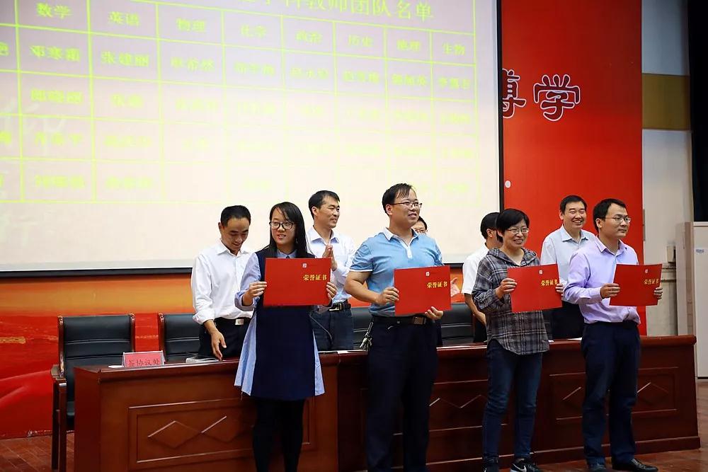 会议还对中考优胜团队、第二届优秀指导教师进行了表彰,师徒代表分别进行了表态发言。