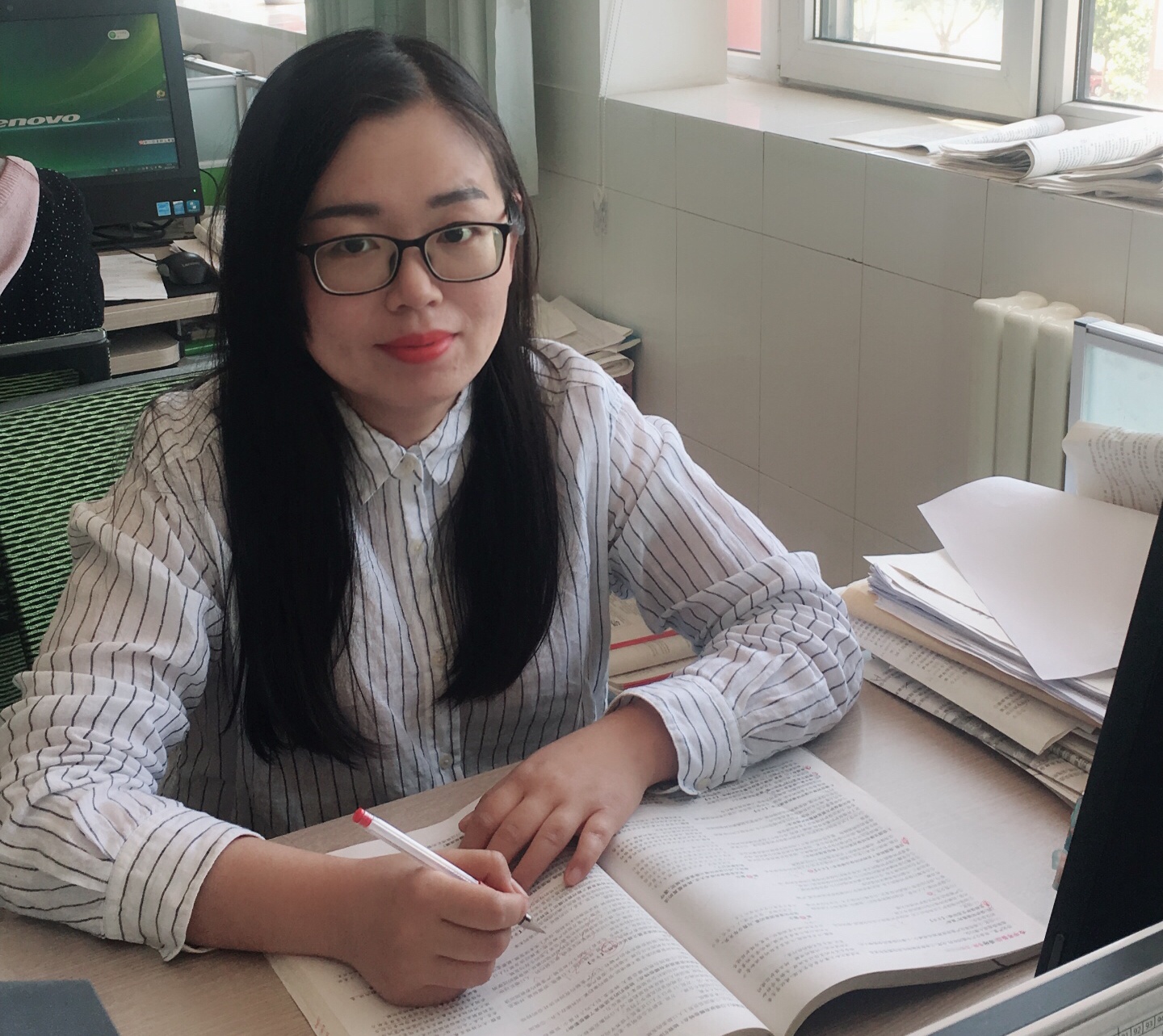 她,是一名“学习型教师”。自费订阅多种书籍、杂志,博览群书,涉猎广泛,用哲学、政治经济学、历史学、教育学等多领域的新思想、新观念充实自己的头脑,使读书、思考成为习一种习惯。她抓住一切机会参加培训学习,为了更新教育理念,提升专业素养,尚在哺乳期的她选择做一名“背奶妈妈”,每日往返于寿光和其他县市。这样的学习不止一次。每次学习归来,她都认真总结、反思,并把学到的先进理念应用于教育教学中去,精心设计每一堂课。播种阳光,收获春天,勤奋地学习、不断地积累使她逐渐成熟。她的课堂,已经成为学生探究知识的乐园,受到学生的好评、家长的认可,她所任教班级的成绩也一直名列前茅。
