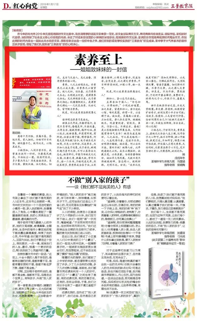 《三圣教育报》D版·红心向党|冯楚涵:素养至上