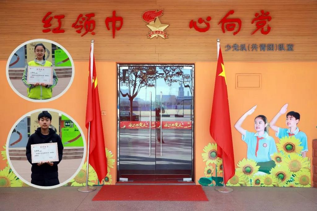 “红领巾心向党”少先队室形象大使 女生:王爱迪(八年级五班) 男生:王星凯(八年级六班) 位置:八角楼一楼 |