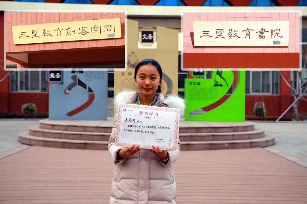三圣教育书院、三圣教育创客空间 牌匾书写者:奚曼钊(九年级一班) 位置:厚德楼 |