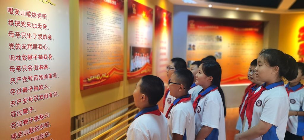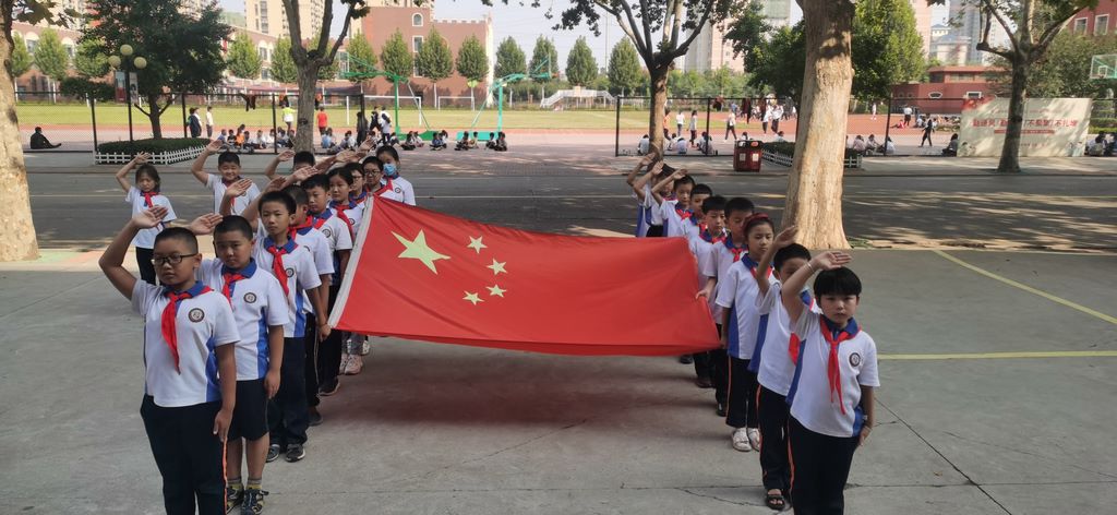 在“红领巾心向党”少先队室前,圣城中学小学部的学生开展了“我和国旗合个影”活动,表达了迎国庆的喜悦之情。合完影后,同学们在少先大队辅导员的带领下,参观少先队室,听取先烈故事,激发爱国主义情感。