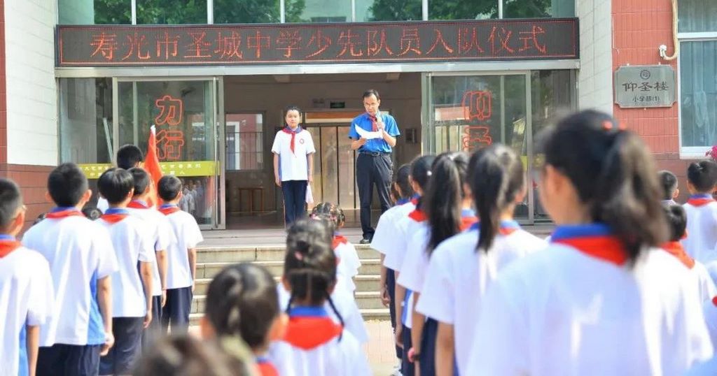 5月31日早上,伴随着灿烂的朝霞、嘹亮的少先队队歌,寿光市圣城中学在仰圣楼前举行了“红领巾心向党——争做新时代好队员”六一分批入队仪式!