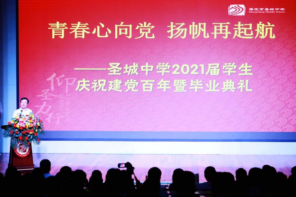 六月初夏,栀子花开;箐箐圣园,情意满怀。今天,带着一份激动,带着一份祝福,带着一份不舍,我们隆重举行圣城中学2021届学生庆祝建党百年暨毕业典礼。首先请允许我代表学校向圆满完成初中学业、即将迈向人生新起点的全体初三学生表示衷心地祝贺!向为同学们的成长倾注了无数心血的老师们表示崇高的敬意!向关心支持学校发展的所有家长们表示真诚地感谢!