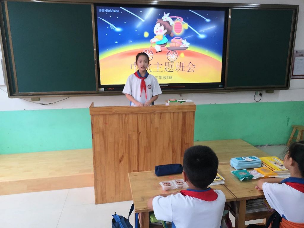 各中队精心准备,以诵读传统经典诗句,齐唱名谣的方式来欢庆中秋佳节,诵读内容及形式丰富多彩。在愉快的氛围中,少先队员进一步了解中秋习俗,激发对中华优秀文化的热爱,增强民族自豪感和文化自信心。