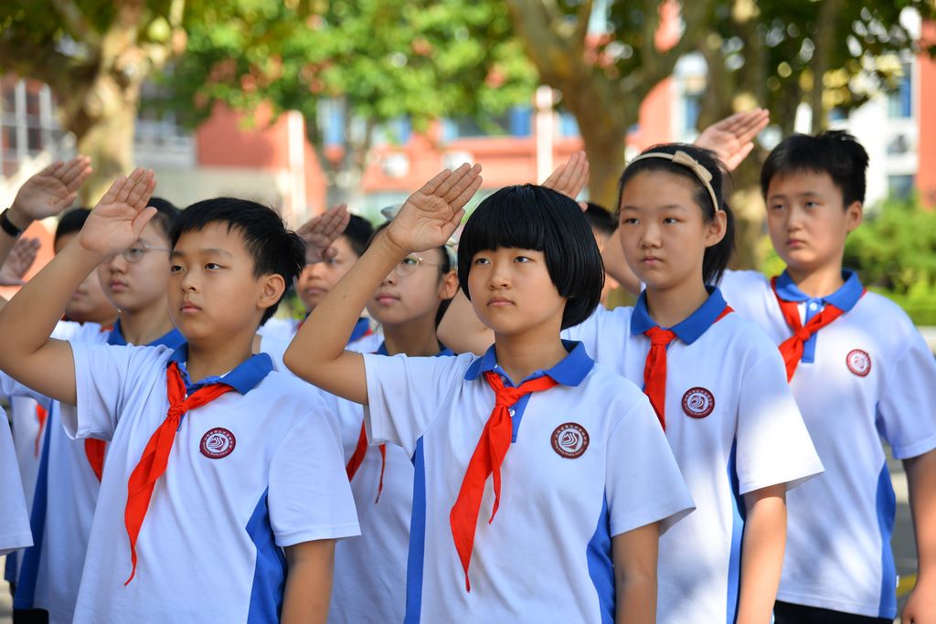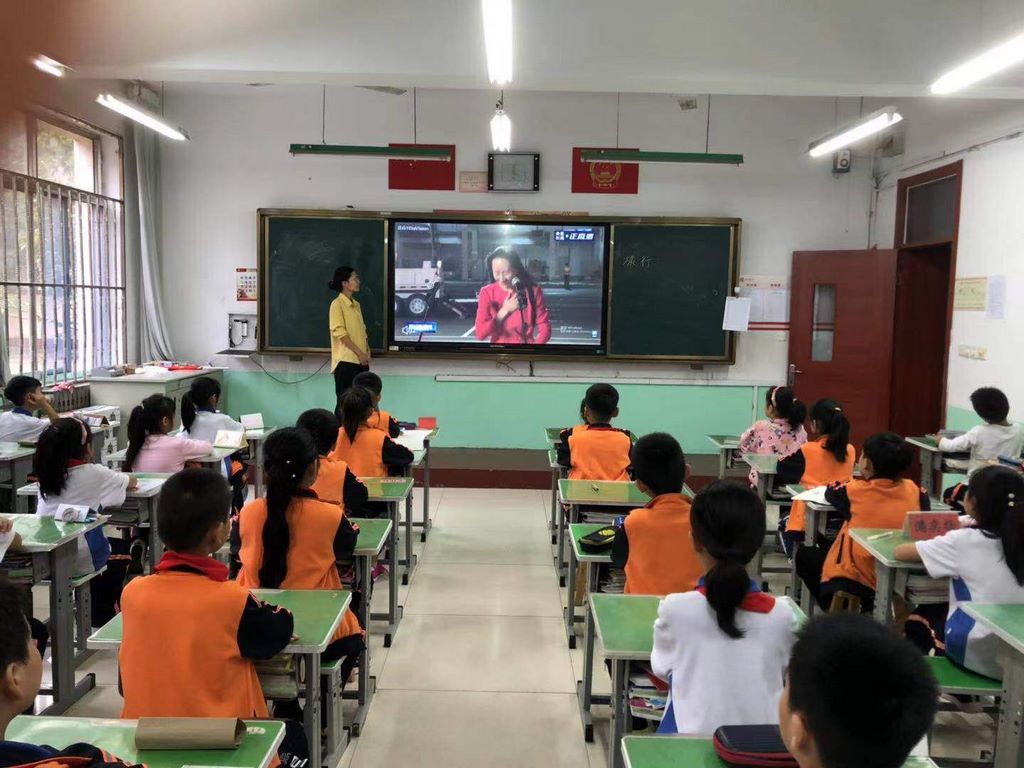 主题活动中,学生们手执国旗,动情喊出了孟晚舟女士在深圳机场的感言:“如果信念有颜色,那一定是中国红。”表达了内心浓浓的爱国情和强国志。