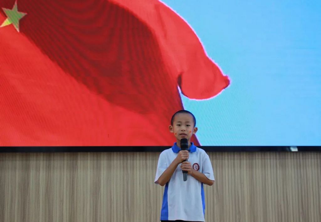 各班级的节目形式多样,内容丰富,同学们用嘹亮的声音《歌唱祖国》,站在国旗下畅谈《如果信仰有颜色》,齐声赞叹《我有一个美丽的祖国》,自豪地介绍《中国字》……低年级的小同学童声稚嫩,表达着对祖国的热爱,高年级的大同学慷慨激昂,尽情表达对祖国的祝福。现场高潮迭起,掌声不断,在场的每一位老师、同学,都被这深深的爱国之情所感染,眼中噙着泪水,胸中澎湃着磅礴的赞歌。