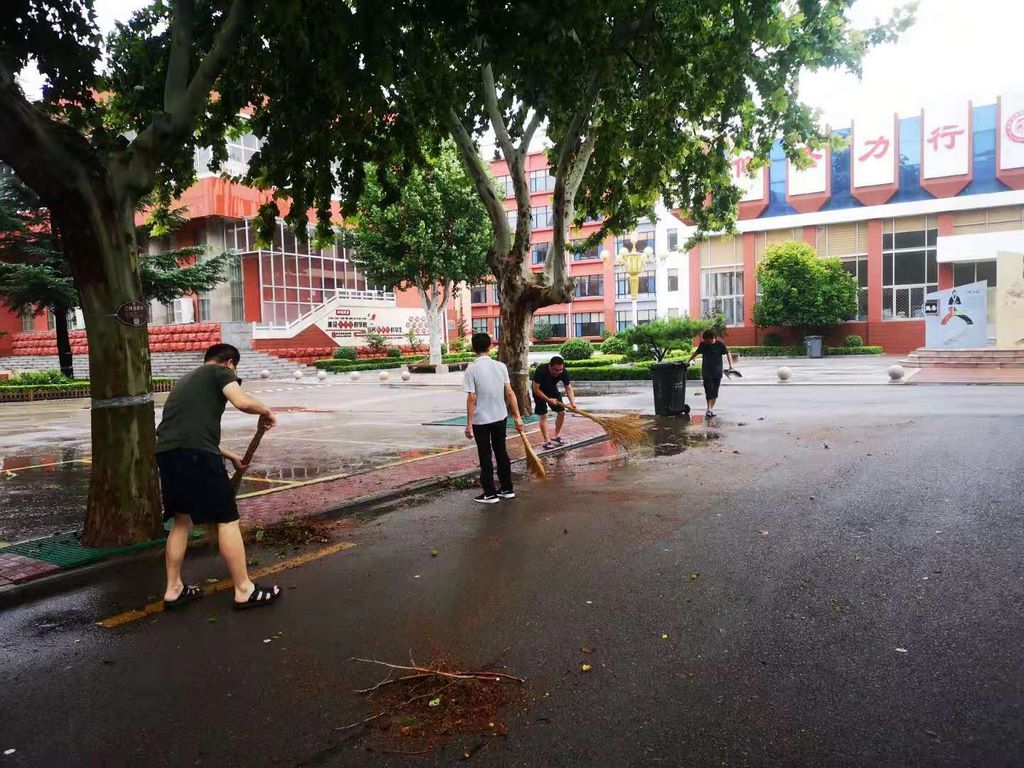 圣城中学党总支充分发挥红色堡垒作用,面对“利奇马”台风带来的灾害,第一时间成立救灾抢险志愿服务队,除了按上级要求随时待命外,还在本校园进行清淤排涝,成功预防了校园内涝的发生,保证了新幼儿园建设工地的顺利进行,为新学年教育教学工作的顺利开展打下坚实基础。