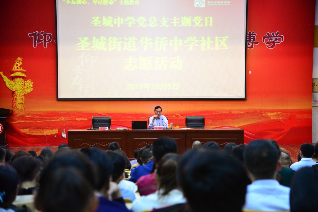 为积极倡导新时代文明新风尚,解决群众在育儿中遇到的问题,按照“不忘初心、牢记使命”主题教育在社区开展主题党日的要求。10月9日晚,圣城中学党总支与圣城街道华侨中学社区联合举办的新时代文明实践中心大学堂隆重开课,社区书记常青和近五百名周边社区居民、七年级学生家长、志愿者参加。市新时代文明实践中心领导小组副组长、关工委主任王茂兴同志主讲,校长、党总支书记齐永胜主持。