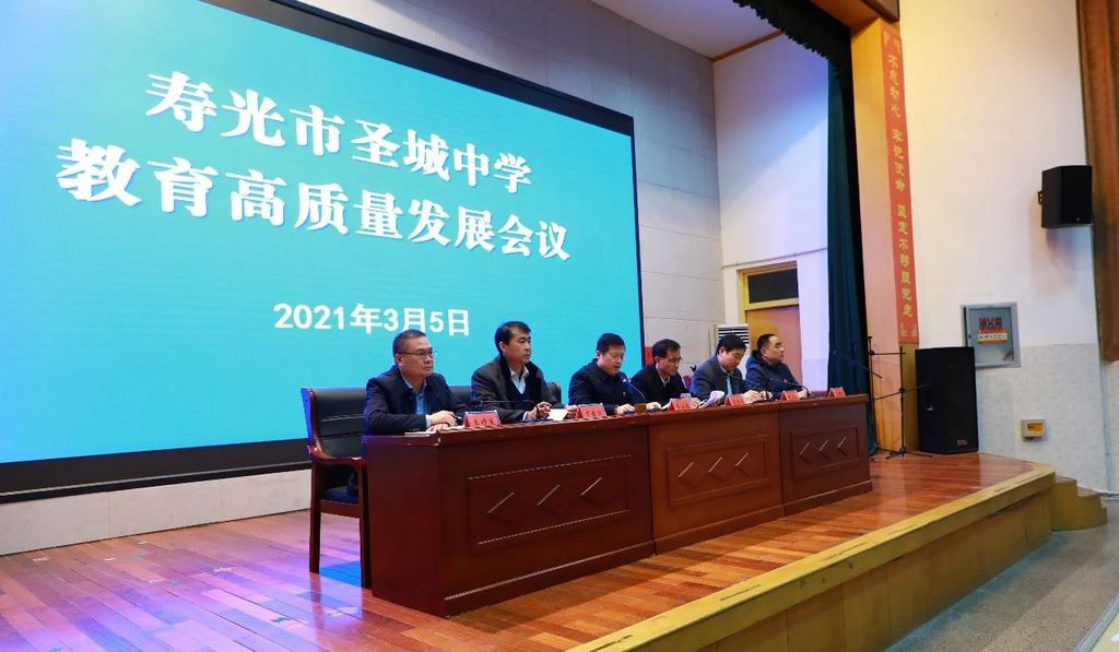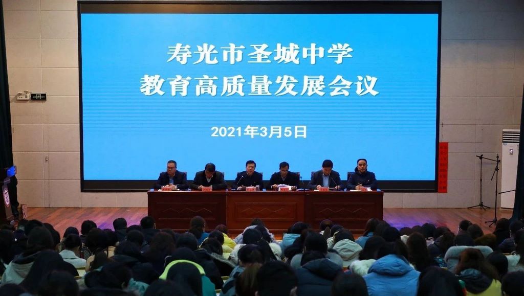 为全面贯彻落实全市教育高质量发展会议精神,为新学期教育教学工作定好位、谋好篇、起好步、开好头,3月5日晚,圣城中学在阶梯教室举办主题为“乘势而上创佳绩,奋发图强谱新篇”的教育高质量发展会议,全体教师参加。副校长张金泉主持。