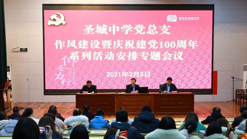 为深入落实全市教育高质量发展会议精神,3月5日,圣城中学党总支召开作风建设暨庆祝建党100周年系列活动安排专题会议,全体党员、干部参加。副校长、行政党支部书记李居林主持。
