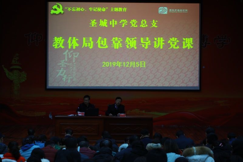 为落实好“不忘初心、牢记使命”主题教育要求,12月5日晚,圣城中学党总支召开组织生活会,全体党员、干部和教师参加,教体局包靠领导刘福昌到会指导,校长、党总支书记齐永胜主持。