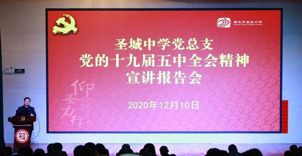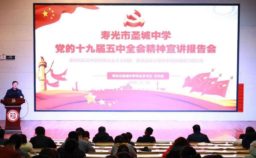 为深入学习宣传贯彻党的十九届五中全会精神,进一步用全会精神统一思想、凝聚共识,加快推进教育改革发展,努力办好人民满意教育。12月10日晚,圣城中学举行党的十九届五中全会精神宣讲报告会。学校党总支书记齐永胜围绕学习贯彻全会精神,作了主题为《坚持和完善中国特色社会主义制度 推进国家治理体系和治理能力现代化》的专题报告。