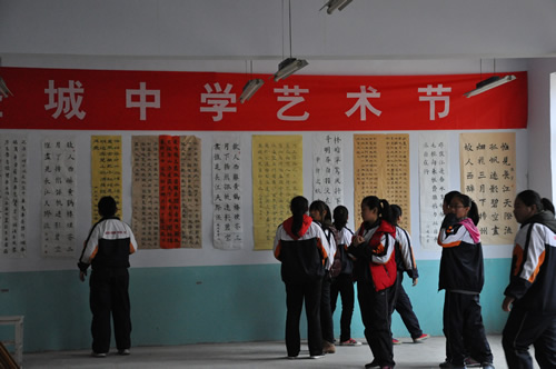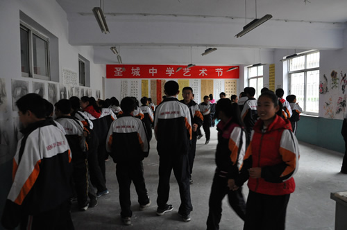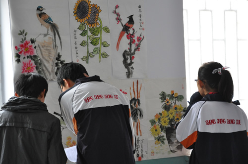 首页 >> 教育教学 > 初中教育 > 初中快讯 圣城中学:举行师生书法绘画展览 2011-12-06 报道 为丰富校园文化生活,培养学生书法绘画兴趣,提升全校师生书法绘画水平,陶冶师生的情操,12月5日,圣城中学在多功能教室举行了师生校园书法绘画展。 此次活动由学校艺体组负责组织,全校师生共同参与,收集作品一百多件,分书法(含软笔、硬笔)和绘画两大部分。漂亮的书法作品诠释了师生对书法的由衷热爱,绘画作品给学生的想象插上了翅膀。通过此次书画展,培养了学生的审美情趣,提高了师生的文化艺术修养,增添了浓郁的校园文化氛围。 附件下载: 责任编辑: