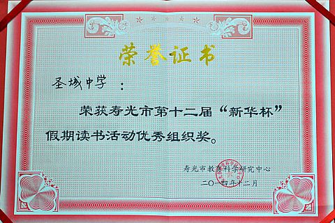 近日,寿光市第十二届“新华杯”假期读书征文总结表彰会召开。在本次总结表彰会上,我校作为学校代表作了典型发言。本次征文活动,我校选送的师生作品取得了优异成绩,学校被评为“读书征文优秀组织单位”,至此,我校已连续十二届获得“读书征文优秀组织单位”荣誉称号。