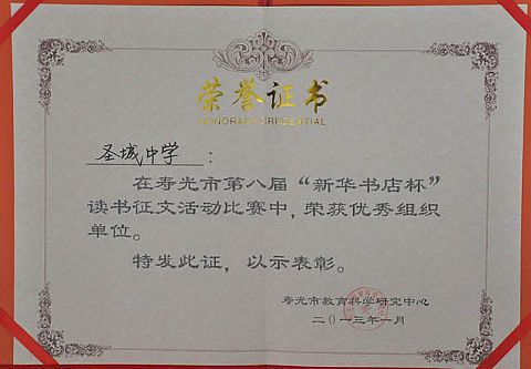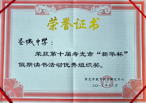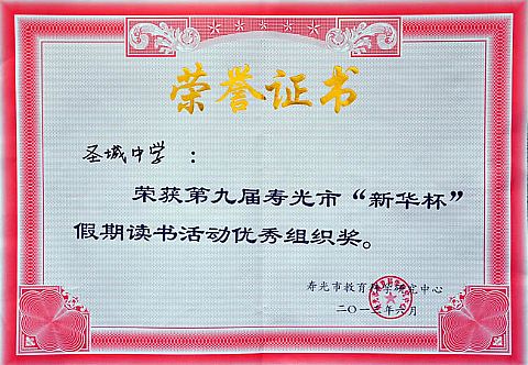 首页/ 圣城中学荣誉长廊: 2018年 2017年 2016年 2015年 2014年 2013年 2012年 2011年 2010年以前 第十届寿光市“新华杯”假期读书活... 第四届农圣文化艺术节优秀组织奖 寿光市运动会男子组、女子组第三名... 山东省青少年“七巧科技”竞赛优秀... 寿光市优秀少先队集体 第九届寿光市“新华杯”假期读书活... 寿光市学校系统先进团委 寿光市教学质量先进单位 2013年1月 寿光市第八届“新华书店... 2013年1月 “中国杯”全国少儿手绘... 2013年2月 寿光市素质教育实施先进单位 2013年2月 寿光市教书育人先进单位