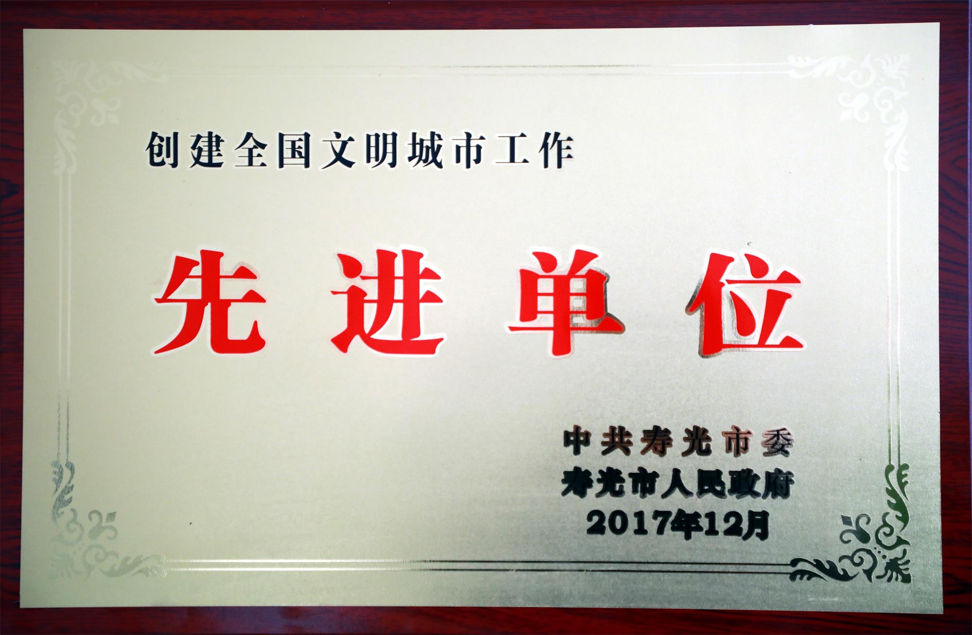 创城工作先进单位 寿光市委市府201712