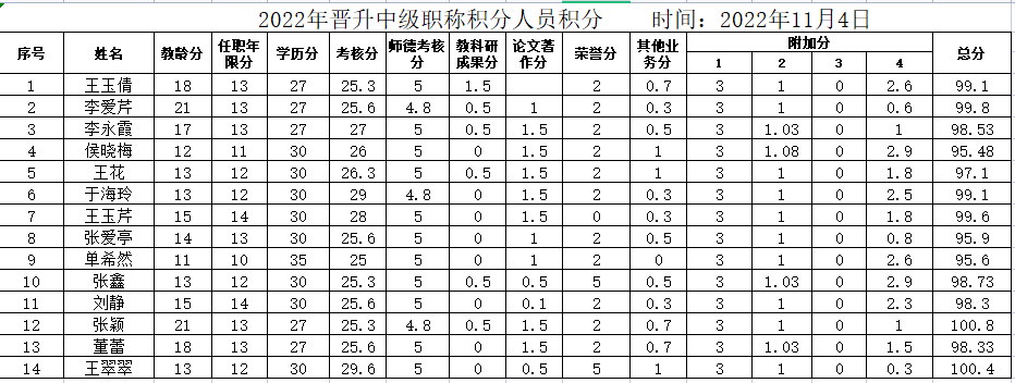 2022年寿光市圣城中学晋升中高级职称人员积分公示