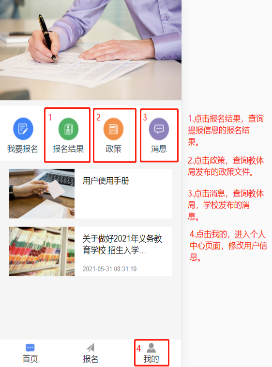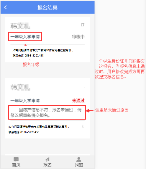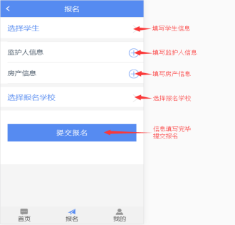 在登录页面输入用户注册手机号及密码,验证通过,进入平台首页,点击报名按钮,跳转到报名页面。如图2所示。