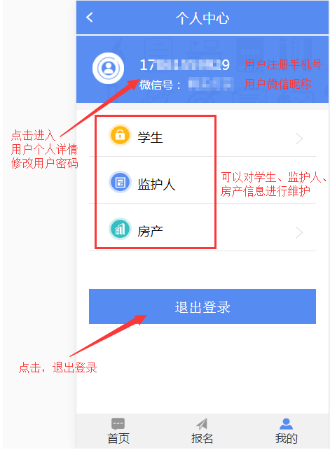 可以进行用户的学生、监护人、房产信息维护,可以修改用户的密码。