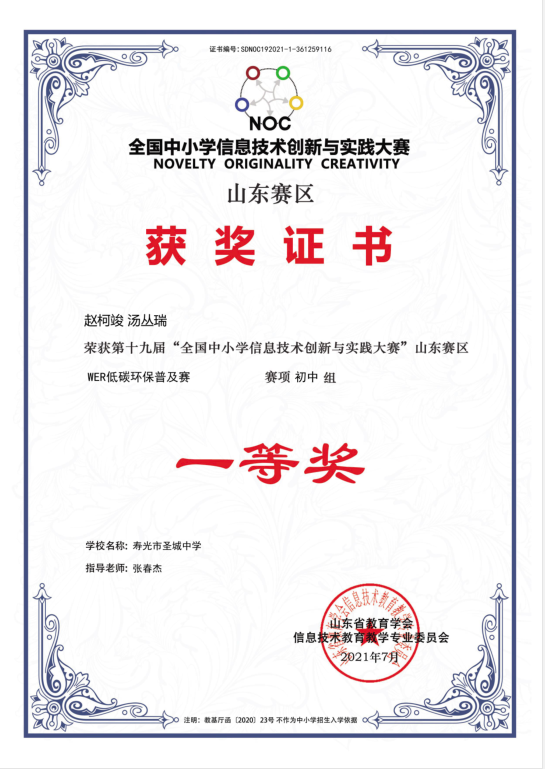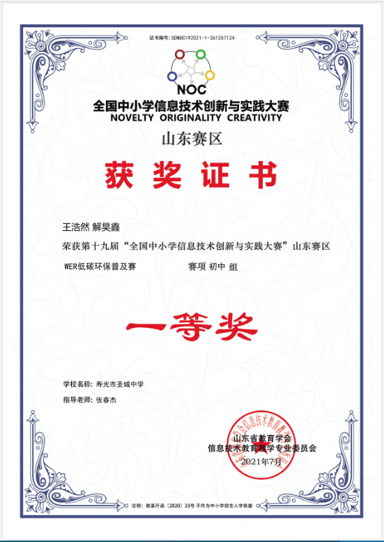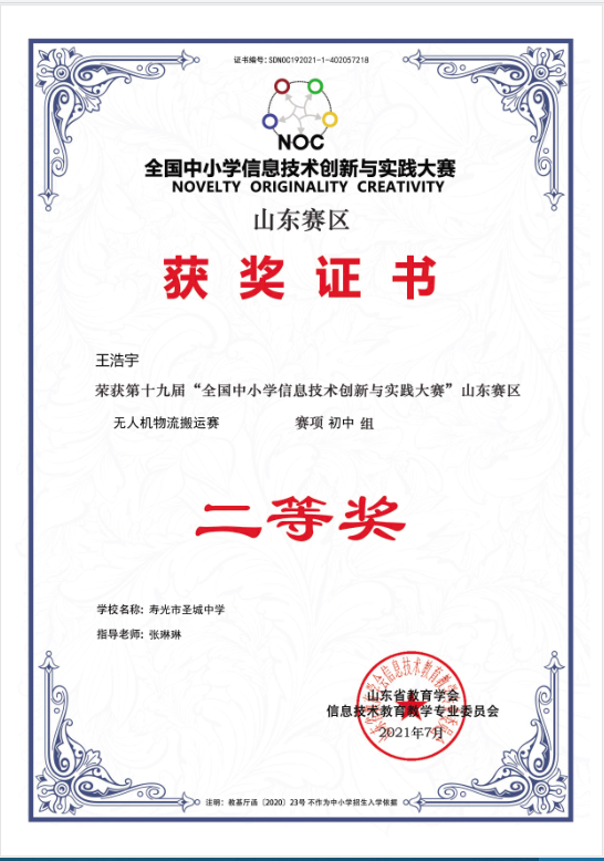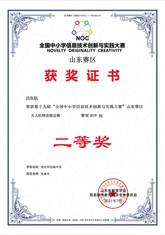 2021年山东省中小学机器人大赛活动我校获奖名单