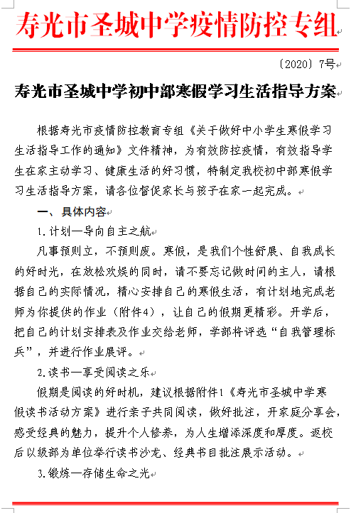 附件:1.《寿光市圣城中学寒假读书活动方案》