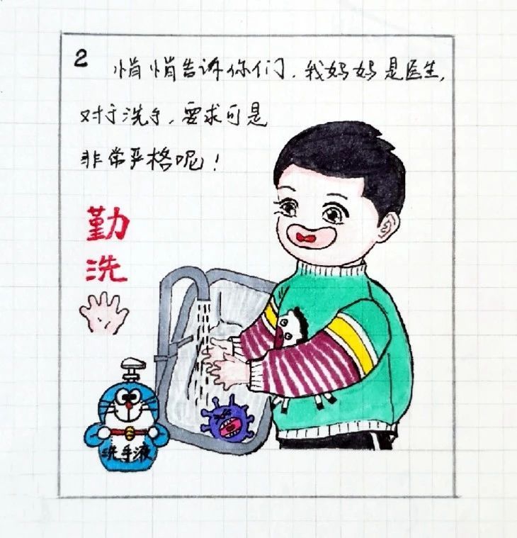 圣城中学幼儿园小七班的张金祥小朋友,妈妈是妇幼保健院的一名医生,现在疫情防控一线。金祥妈妈除完成本职工作外,还利用业余时间,拿起了疫情防控的另类武器——画笔,和金祥小朋友共同完成了疫情公益宣传画《战“疫”小英雄》,用小朋友们喜闻乐见的方式,普及科学的防疫知识,受到小朋友们的热烈欢迎。疫情面前,亲子齐上阵,战“疫”定胜利!