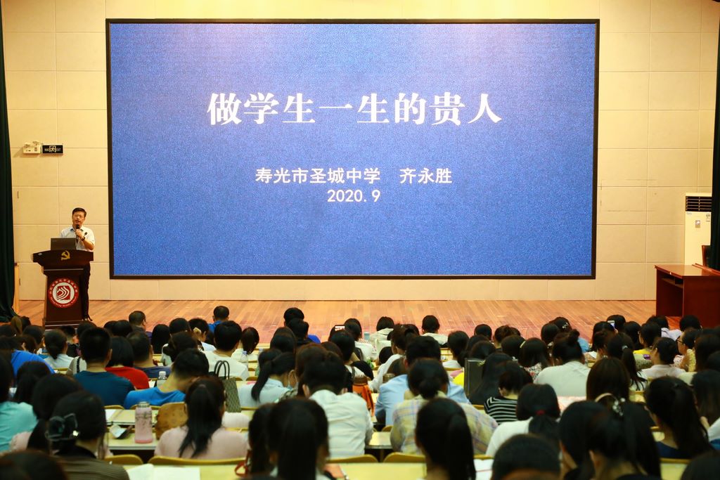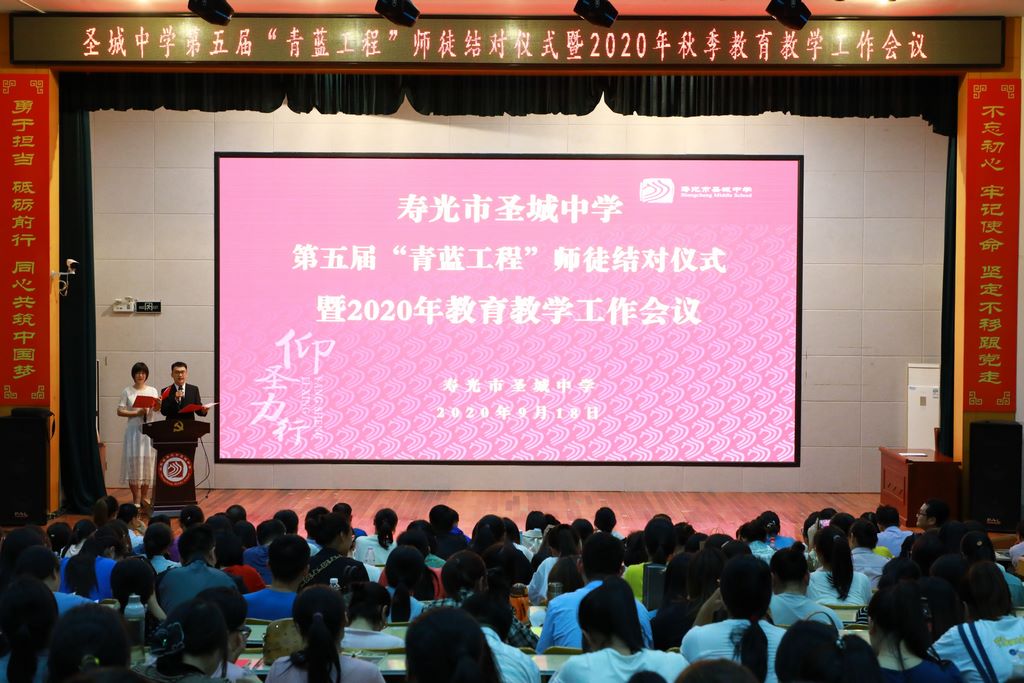 金风送爽,硕果飘香。为了进一步促进青年教师的业务成长,加大青年教师的培养力度。近日,寿光市圣城中学在阶梯教室召开第五届“青蓝工程”师徒结对仪式暨2020年教育教学工作会议,全体教师参加。