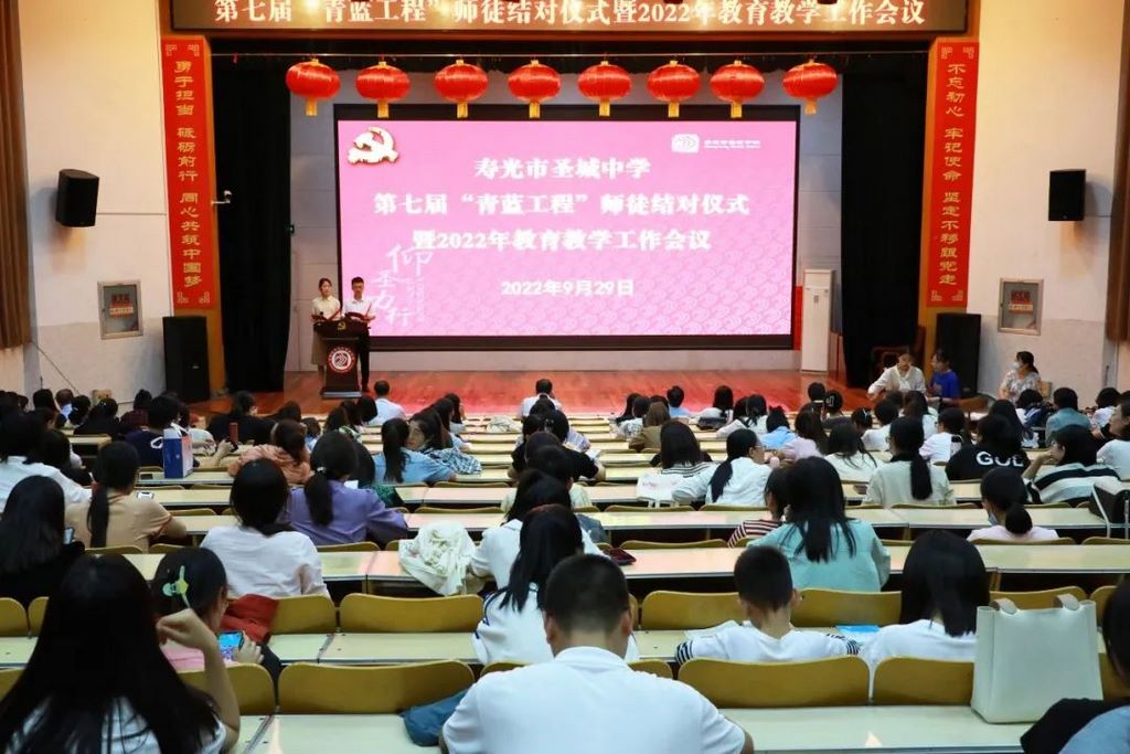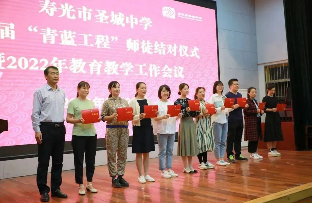 为促进青年教师快速成长,充分发挥学校骨干教师“传帮带”的示范和引领作用,增强教师间的业务交流和相互学习,打造一支爱学习、肯钻研、重教研的高素质教师队伍,9月29日,寿光市圣城中学召开第七届“青蓝工程”师徒结对暨2022年教育教学工作会议。