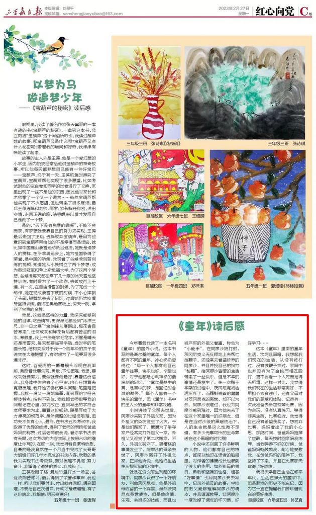 学生素养 || 巨能校区孙艺真:《童年》读后感