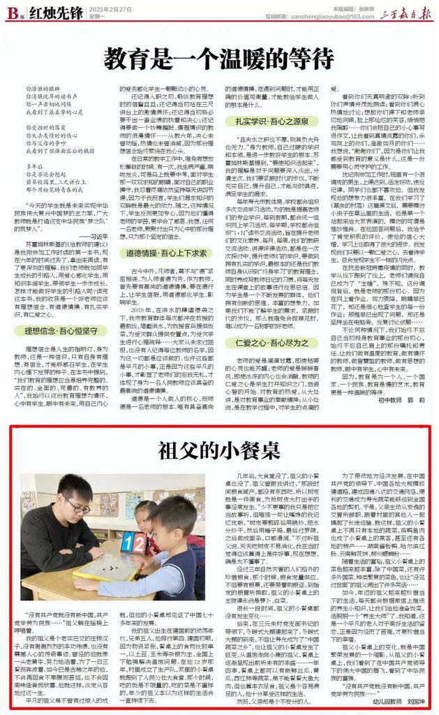 祖父小餐桌上的变化,就是中国繁荣发展的一个缩影。从祖父的小餐桌上,我们看到了在中国共产党领导下的伟大中国的腾飞,看到了中华民族的富强。