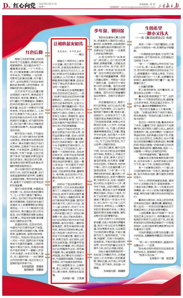 学生素养 || 丁天琪:让初心薪火相传