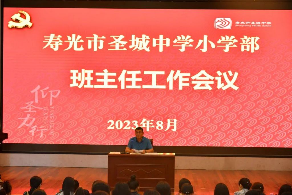 为进一步加强班主任队伍建设,做好新学期重点工作部署,强化班级常规管理,促进学生健康成长和全面发展,完善德育工作体系,细化学校班主任工作,寿光市圣城中学于8月30日上午召开班主任工作会议。会议由小学部学生发展中心主任蒋锡水主持,各级部主任以及圣城中学小学部全体班主任参加了本次会议。