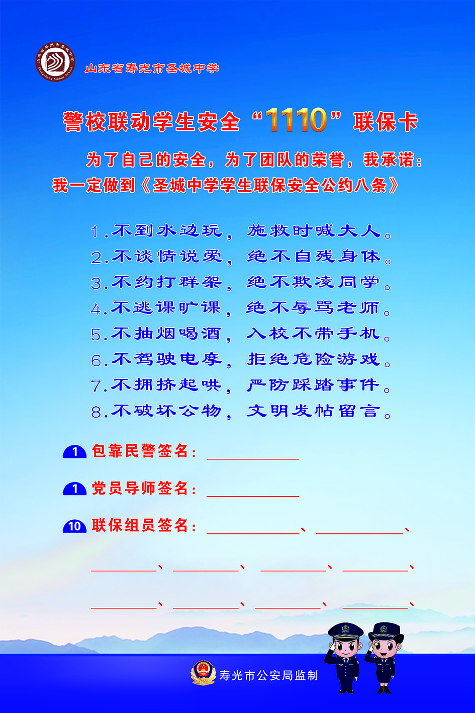 启动仪式后,圣城中学“安全大集”隆重开赶,“安全大集”设22个安全课程摊位、1个“1110”警校联动安全公约签订摊位、5个名师工作室谈心点,把对学生的安全教育融入别开生面的实践活动中,让学生在轻松的氛围中深刻地体验、掌握安全知识,学习自救技能,提升安全防范意识,更通过签订“1110”警校联动安全联保卡为学生构筑了一个安全教育网。