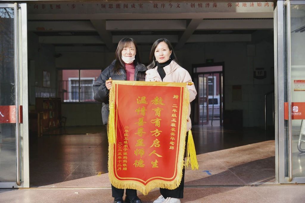 12月25日,二年级五班的一位家长手捧绣有“教育有方启人生,温情善导显师德”“一朝沐杏雨,一生念师恩”字样的锦旗来到学校,献给了二年级五班的袁英华、彭雅文老师。锦旗背后的教育细节令人感动。