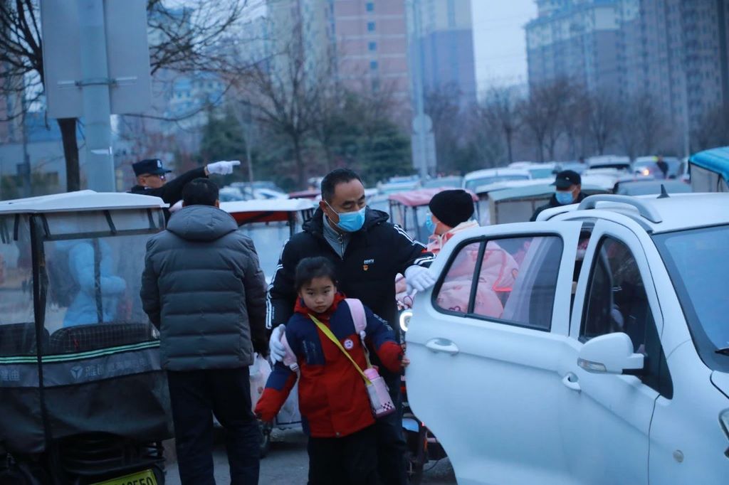 如今,在学校大门口两侧,每隔5米即有一个值班党员干部,当送孩子的电动车或汽车到达后,党员干部会迅速走上前,拉开电动车门帘或打开车门,将孩子接下车,为孩子背上书包和水壶,并为家长关上车门,动作一气呵成,不到15秒的时间完成。