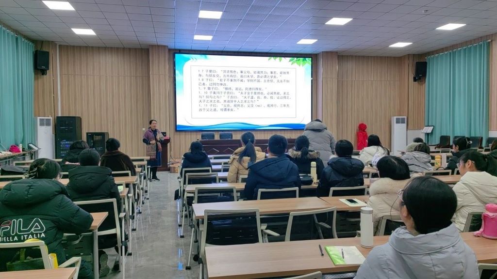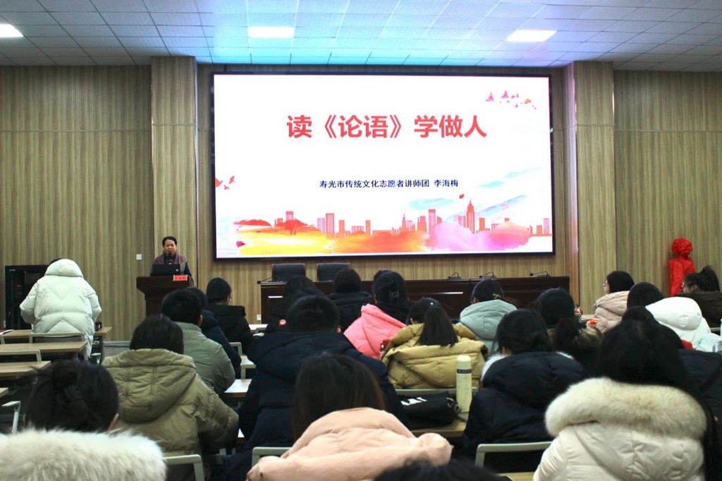 2月22日上午,圣城中学巨能校区在一楼报告厅举办传统文化经典诵读讲座,邀请寿光市传统文化办公室李海梅主任作报告,全体教师参加。