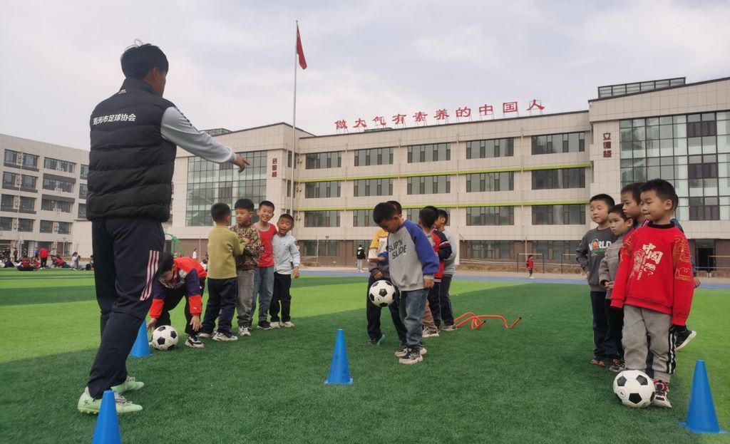 运动场上,学生们认真听着教练的动作讲解,讲解过后,大家跟着教练的示范动作练习起来。小小的足球,在孩子们的脚下灵活传送,每一次精准绕过,每一个利落转身,都是辛苦训练的成果,孩子们额头上的汗水,就是最好的见证。蓝天碧草,一名名绿茵场上的追风少年,怀揣热情,足下生辉。