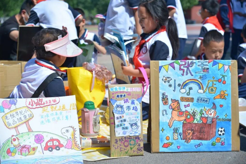 在准备阶段,数学老师引导学生们深入学习了人民币相关知识、物品的合理定价以及记账方法。与此同时,美术老师则悉心指导学生们掌握了店面及促销海报的设计要领,而语文老师则着重培养了孩子们在商品售卖中的宣传表达和讨价还价能力。在家长的悉心协助下,孩子们充分发挥创意,精心打造了各具特色的摊位。