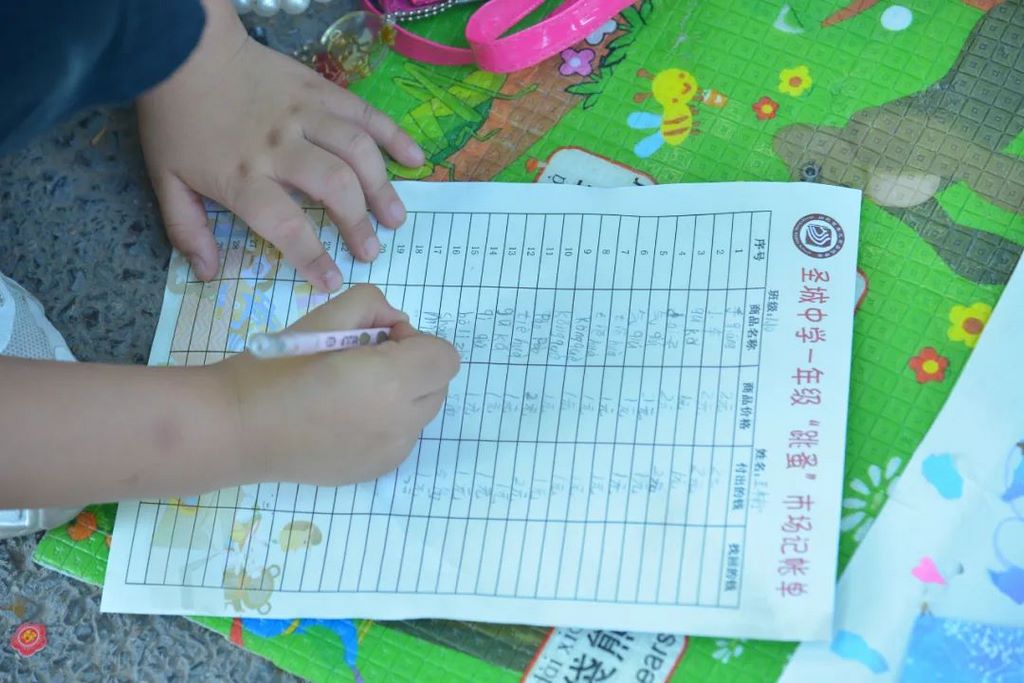 为了便于了解自己这两天的收入状况,孩子们在售出商品后及时记账,体验了当“小会计”的乐趣。