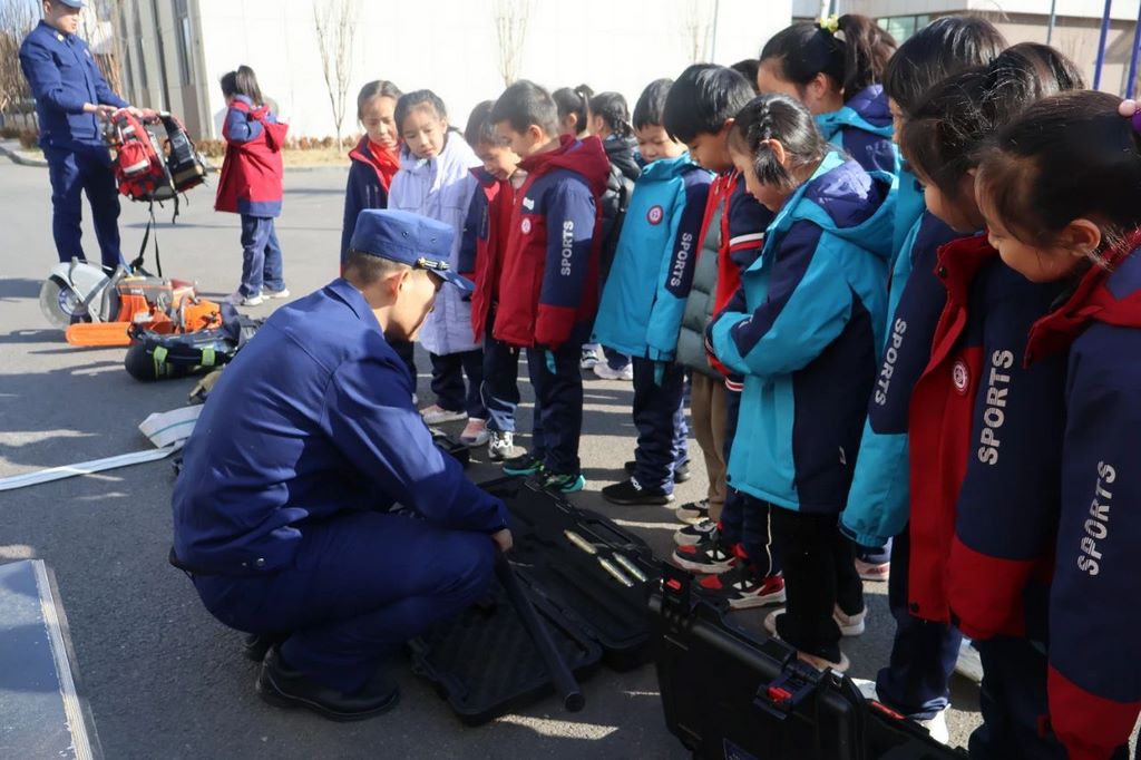 本次活动分为学生培训和教师培训两部分。在学生培训环节,学校操场成为了生动的消防课堂。消防员们带来了各种消防器械,逐一介绍其功能和使用方法。学生们在消防员的指导下,亲自体验了消防设备,通过实地演练,掌握了火灾应急处理技能。这种理论与实践相结合的方式,让学生们对消防安全有了更深刻的认识。
