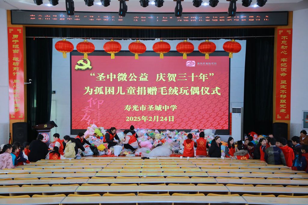 为献礼校庆,播种希望之光,深化实践育人,凝聚向善力量,2月24日,寿光市圣城中学党委联合家委会、蒲公英公益服务中心在三个校区同步发起“为孤困儿童捐赠毛绒玩偶”仪式,捐赠共计毛绒玩偶等3798件。以公益行动献礼校庆,让校庆的喜悦与社会的温情同频共振。