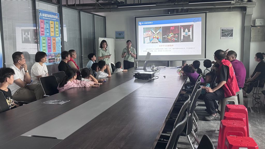 活动现场,各种各样的无人机整齐排列,专业老师以及小飞手们分别操控不同的穿越机进行了精彩飞行表演,瞬间点燃了孩子们的好奇心。随后,老师生动讲述了无人机的发展历程、广泛应用领域等,普及了基本原理与航空知识。