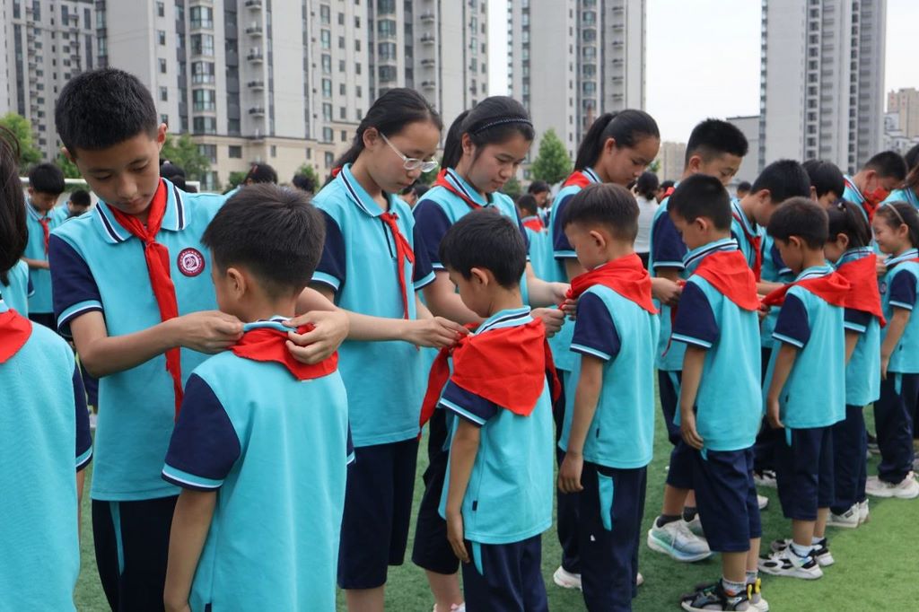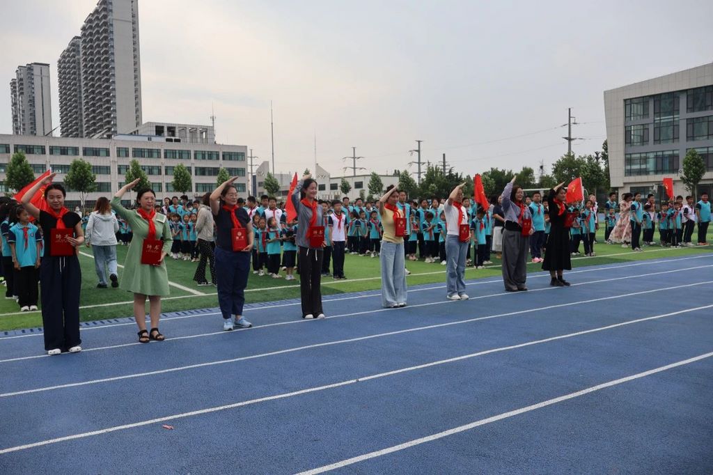 张海艳副校长在讲话中寄语新队员:“红领巾是红旗的一角,更是责任与担当的象征。希望你们牢记习总书记教导,立志向、修品行、练本领,让胸前的红领巾更加鲜艳!”随后,大队辅导员张会茹带领全体队员呼号:“准备着:为共产主义事业而奋斗!”“时刻准备着!”激昂的呼号声彰显新时代少年的坚定信念。
