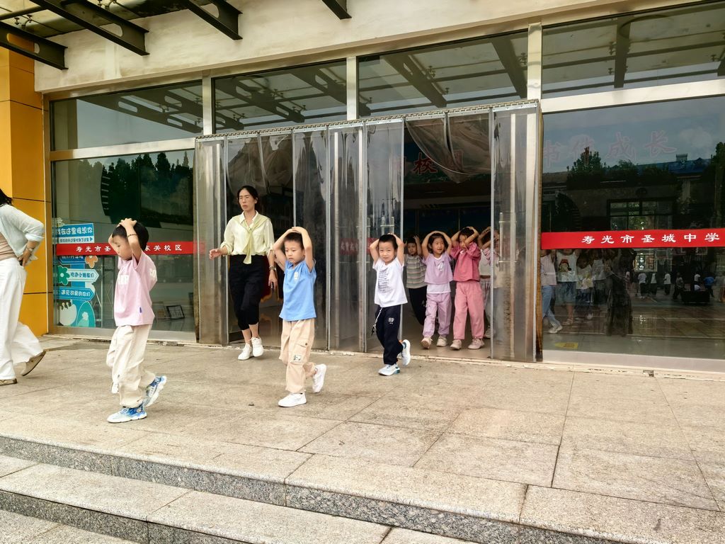 演练前,学校明确了各环节职责分工。部分老师在楼梯口值守,专人负责意外事故处理,保健医承担急救医疗任务,其他老师们则全程守护学生疏散安全。从避震到疏散的每一个环节,都做到了责任到人、预案到位。