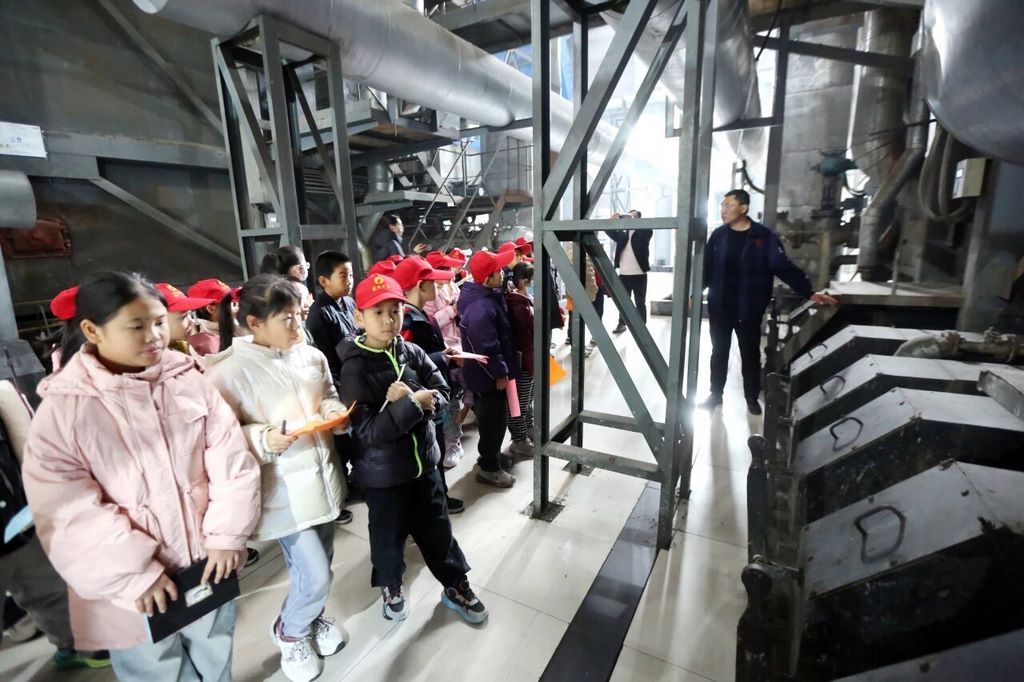 “原来烟囱可以这么高!”刚下车,百米高的“白塔”便撞进视野,像一支巨笔书写冬日天空。穿过安全通道,小记者们来到煤炭储备仓,乌金山丘连绵起伏,履带“咔嗒”作响,把乌金源源不断送进锅炉巨口,引来快门声与惊呼声此起彼伏。再往前,巨型锅炉横卧如钢铁长龙,讲解员叔叔按下启动钮,火焰成像屏瞬间亮起橙红,“这是给整座城市‘温暖’的‘心脏’,每分钟输出万吨热水。”数字跳出,孩子们齐声“哇”了出来,第一次真切感到:家的温度,就源自这些钢铁与火焰。
