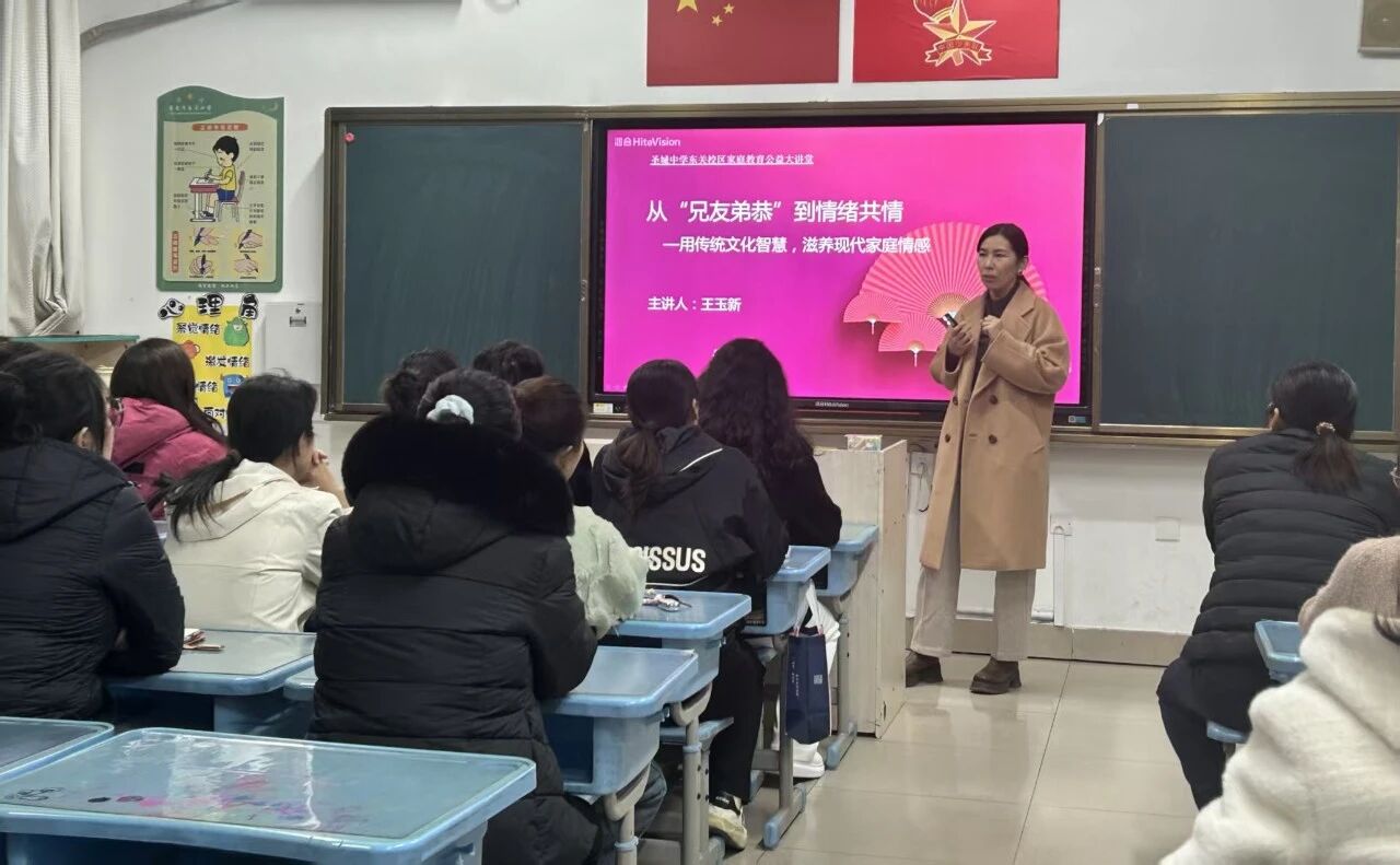 为扎实推进“幼小衔接示范校”建设,深化“三圣教育”育人内涵,10月22日,东关校区特邀心理咨询师、高级家庭教育指导师王玉新老师,面向一年级家长开展以《从“兄友弟恭”到情绪共情》为主题的家庭教育讲座,以传统文化智慧破解亲子沟通痛点,为幼小衔接期家庭注入育人暖流。