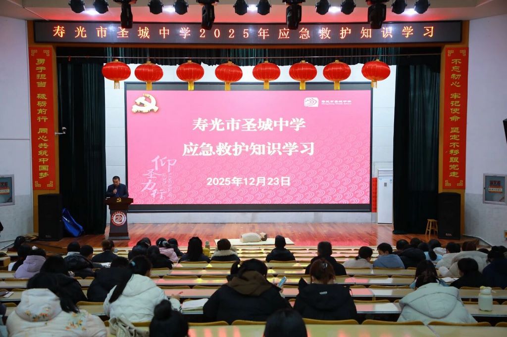 为全面提升师生应对校园突发事件的应急救护能力,筑牢校园安全防线,12月23日下午,圣城中学邀请寿光市中医院专家入校,开展了一场应急知识培训。全体班主任、体育教师和保育员参加,安全科主任孙安山主持。