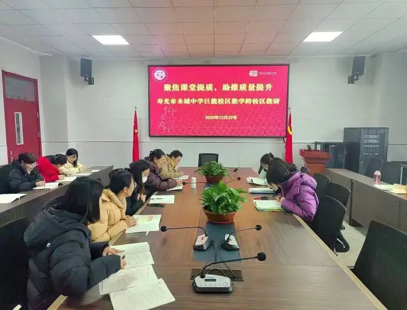 为进一步深化课堂教学改革,加强校区间的教学交流与协作,共同提升数学学科育人质量,12月23日下午,圣城中学组织开展数学学科跨校区联合教研活动。本次活动以课堂为阵地,以研讨为桥梁,凝聚集体智慧,共探教学新路径。圣城中学三校区数学学科导师及巨能校区全体数学教师参加。