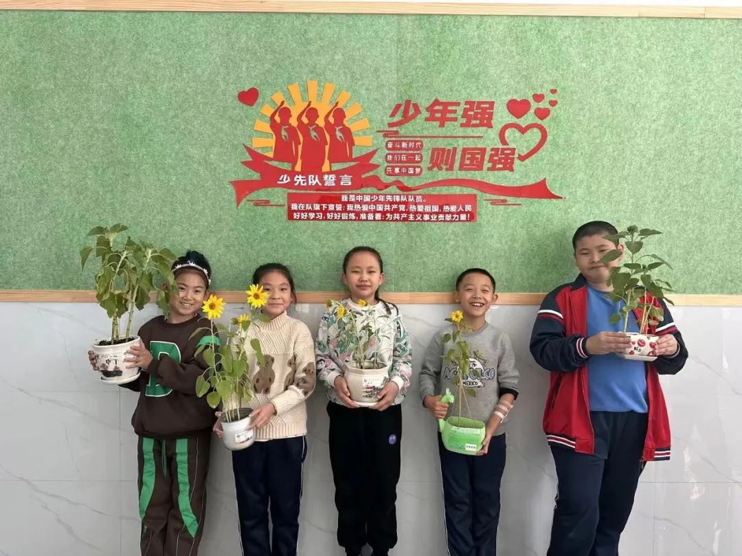 同学们将种子带回家后,先了解了种植葵花的一些知识,然后精心挑选了适合种子生长的土壤和花盆,亲手将种子种下后,又写下自己的心愿卡片。每天观察种子的生长情况,记录到实践报告上。在养护葵花发芽、长大、开花的过程中,老师们适时对学生进行了劳动技能、生物知识、写作表达等知识的讲授,并有机融入爱国教育。针对种植失败的同学,开展了“葵花向阳、我心向党”的伟大建党精神教育,为学生讲解我党发展过程中遇到挫折但越挫越勇的历史事件,让他们正确认识种植的成功或失败。在举办“葵花种植展览”活动时,学生们争先恐后地将自己的“劳动成果”带到学校,并分享自己种植过程中遇到的问题和收获。